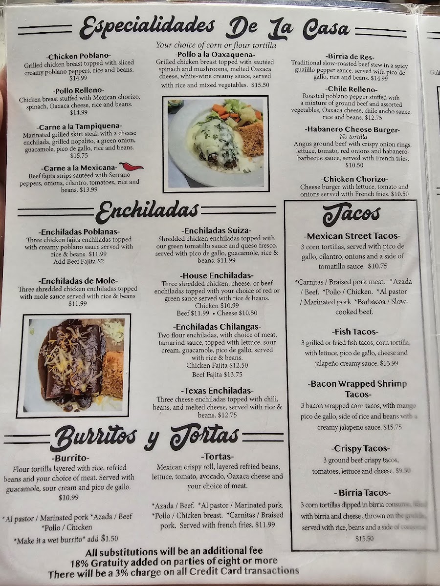 Gulf shrimp sautéed with tomatoes, onions, olives, and bell peppers. Served with rice, beans, and your choice of flour or corn tortillas.